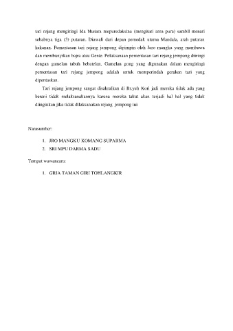 kekanan. Pementasan tari rejang jempong dipimpin oleh Jero mangku yang membawa