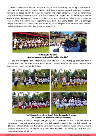 (mesantalan) sesaji setelah didoakan. Mesantalan (melempar lemparkan sesaji) ini memiliki arti